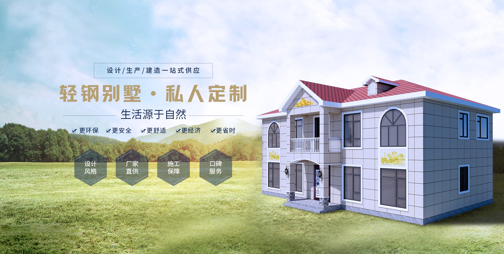 健康指標(biāo)輕鋼別墅的材料均為綠色建材,而且采用干作業(yè)施工,保護環(huán)境和減少污染,滿足生態(tài)環(huán)境要求,為人們提供了健康舒適的居住環(huán)境。